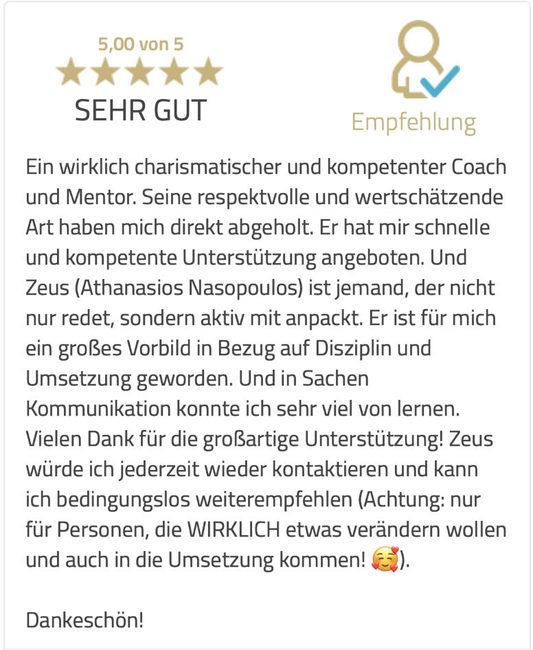 Athanasios Nasopoulos (Künstlername: Zeus) ist studierter Kommunikationsdesigner, Körpersprache Experte & Mental Coach.